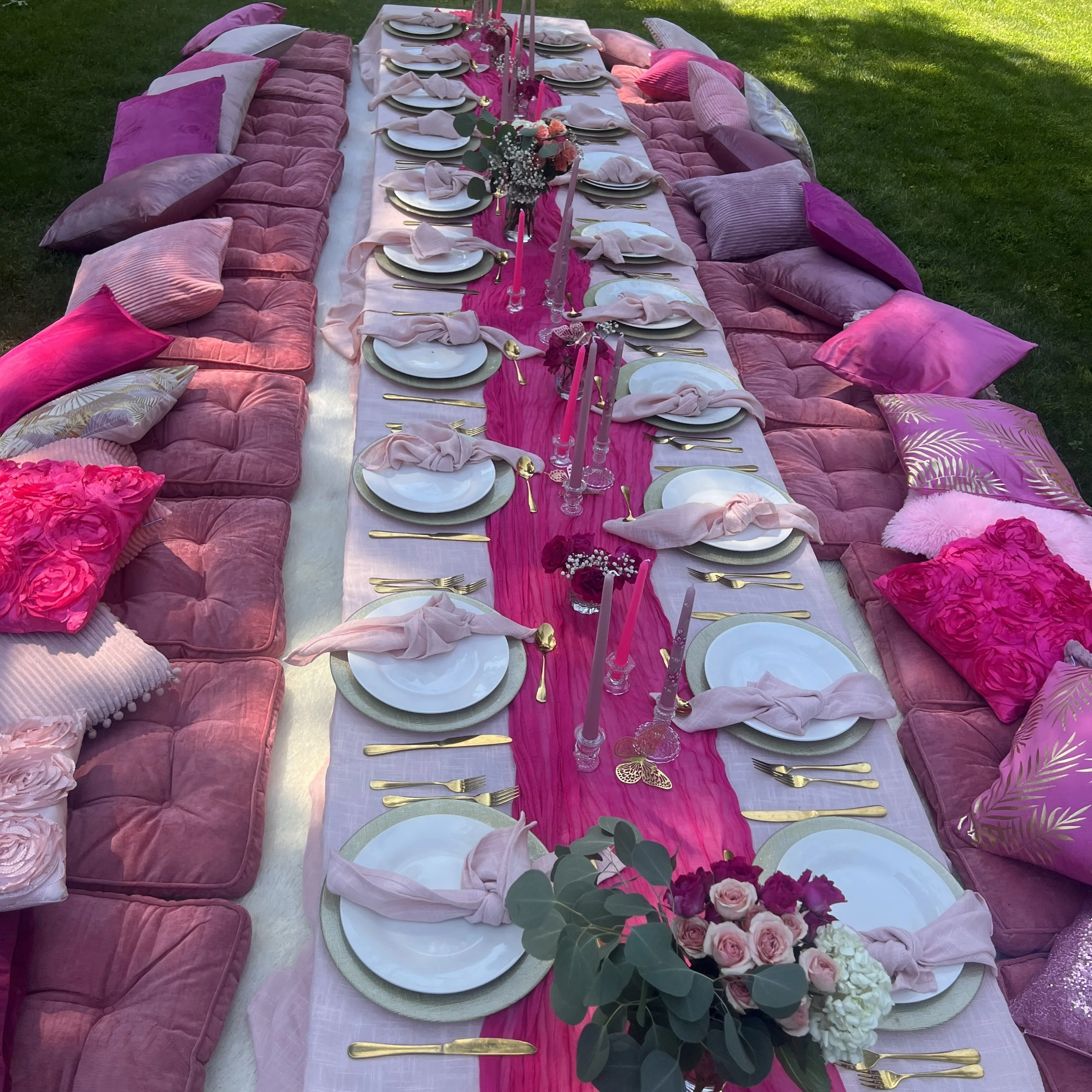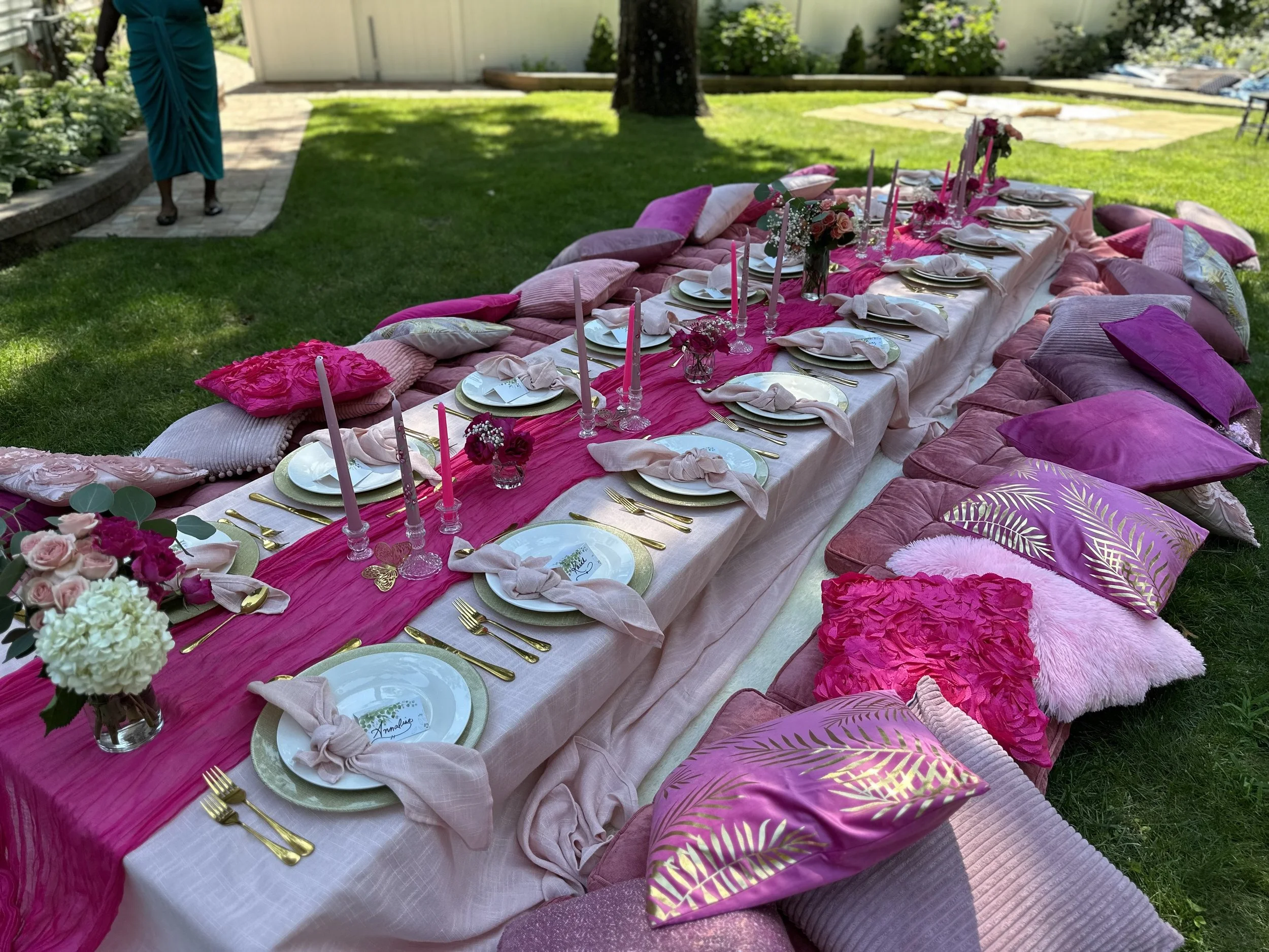 "Tina designed my 35th birthday party with a beautiful boho picnic theme. She arrived early, executed my vision perfectly, and added extra touches such as bud vases and painted candles that made the event even more special. Her attention to detail and creative flair exceeded my expectations. I highly recommend her for any special occasion!”